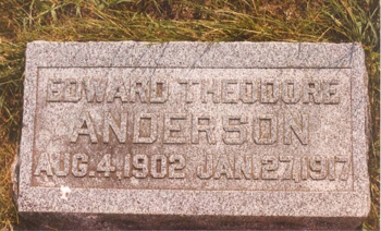 Edward Theodore, and his twin, Ernest, was born on August 4, 1902, at Howells, NE. He was nine when the family moved to North Bend, Nebraska. Theodore died at age 15 in 1917 of pneumonia.