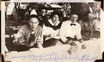 Family picnic at Hooper, about 1920 Harvey, Marnie Walker, Dick Duffold, and Harvey's father, William O. Anderson |