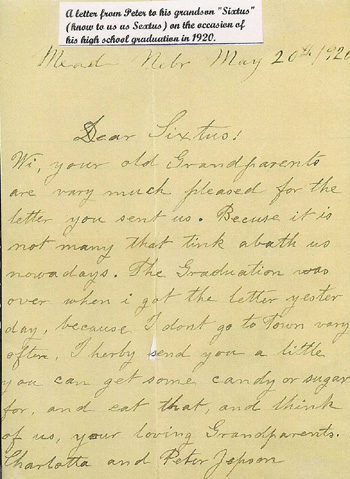 There were two other items on the poster Milford brought besides the two relating to the model ship. One was a photograph and the other was a letter Peter Jepson had written to his grandson "Sixtus" (Milford's father) upon his graduation from high school.