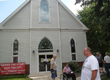 We met in the basement of the Alma Lutheran Church in Mead, the church in which the Jepsons and then the Wilsons held membership. That's Mark standing by the door. |