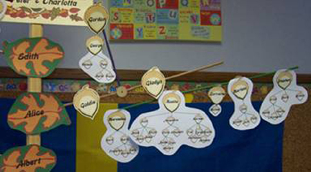 At the top of the family tree we find Edith and her descendents, 5 children,15 grandchildren, 28 great grandchildren and 16 great grandchildren. |