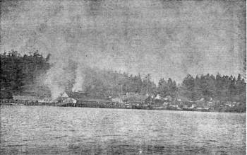 North Bend was a company town, founded and owned by Asa Simpson, who had established the sawmill and a shipyard here. With a seemingly inexhaustible supply of lumber on the steep hillsides which come right down to the seacoast, he had established several such sites along the Oregon-Washington coast and brought his products to San Francisco. Coos Bay was especially well suited for development of a lumbering business because several fingers of slough reached back into the hills from the bay providing natural waterways for floating the logs down to the coast after they were rolled off the hillsides.