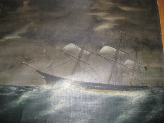 This painting of the full-rigged sailing ship is now in the possession of Peter's